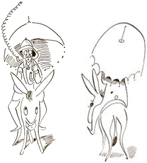שונות בונה את הציור. הקו הסגור יוצר את מראה האיש והחמור, הקו המסולסל את