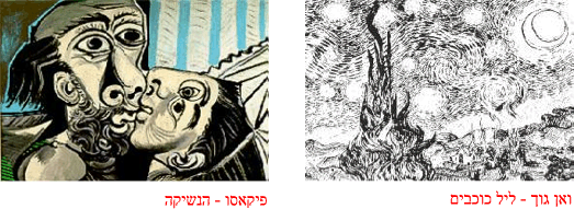 בציוריהם של ואן גוך ופיקאסו לקו איכויות הבעתיות שונות: הקו של ואן גוך קצר, שבור, סוער, דינמי ומתפרץ, הקו של פיקאסו ארוך וממזג.