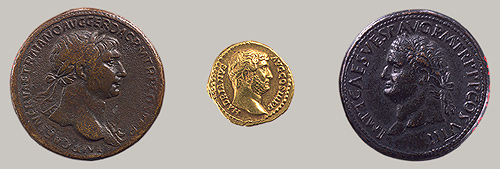 Coins of Titus, Trajan, and Hadrian, |